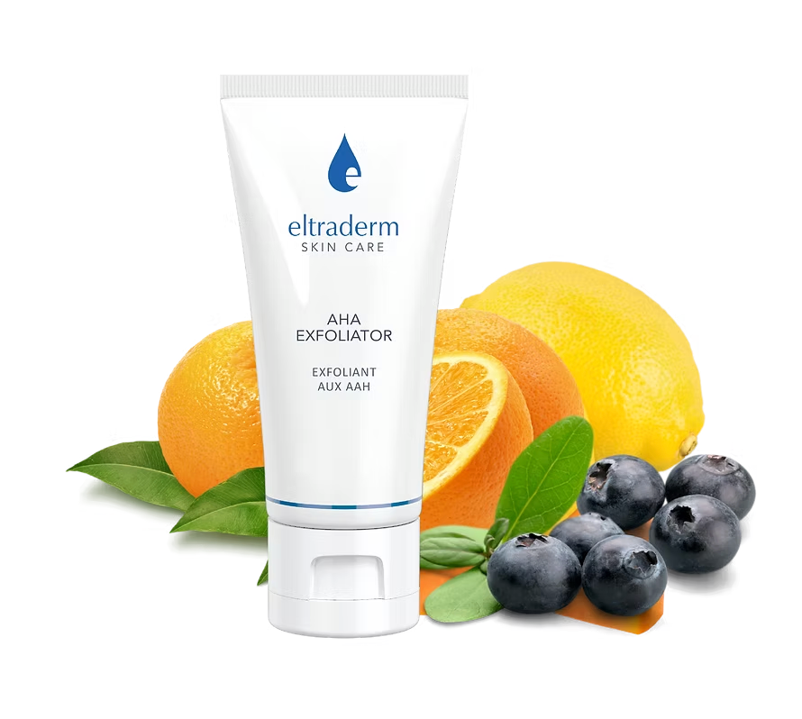 - Alpha Hydroxy Acids derived from natural fruit acids - bilberry, sugar cane, sugar maple, orange, and lemon for optimal cell renewal stimulation.